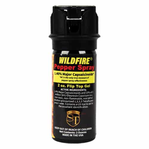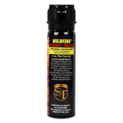 Wildfire 1.4% MC flip top actuator pepper gel stream. The WILDFIRE® PEPPER SPRAY is hot, hot, hot. The Major Capsaicinoids are the true heat measure, WildFire has the hottest on the market at 1.4% Major Capsaicinoids. In addition to causing an attacker pain, The WildFire 10% oleoresin capsicum formula swells the mucous membranes, which makes breathing difficult, and swells the veins in the eyes, causing the eyes to close.